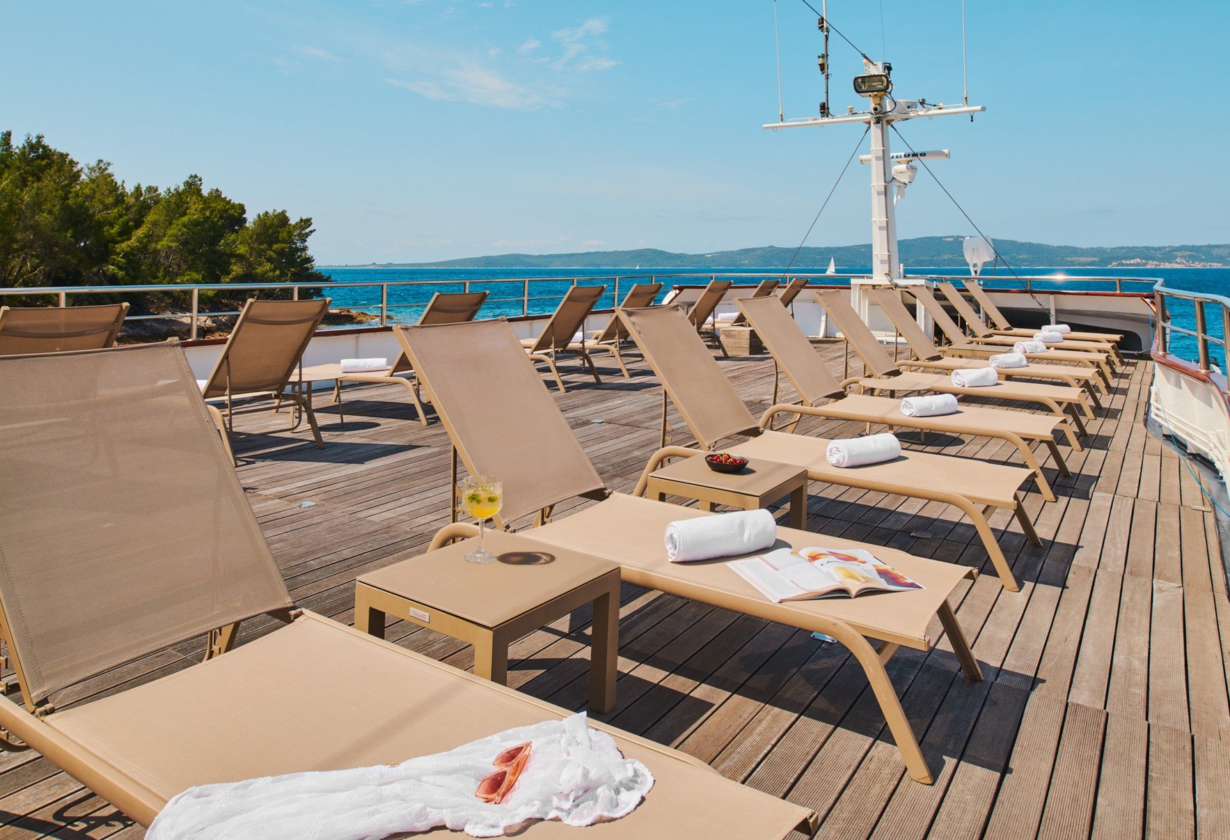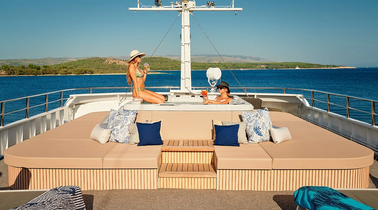 Each day looks a little different. Swim in secret coves. Explore stone villages. Dance barefoot. Read for hours. Jump off the top deck. Optional everything, unforgettable everything else.